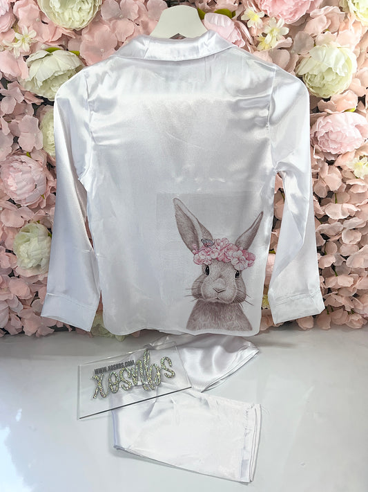 Bunny White Satin Full Length Pjs