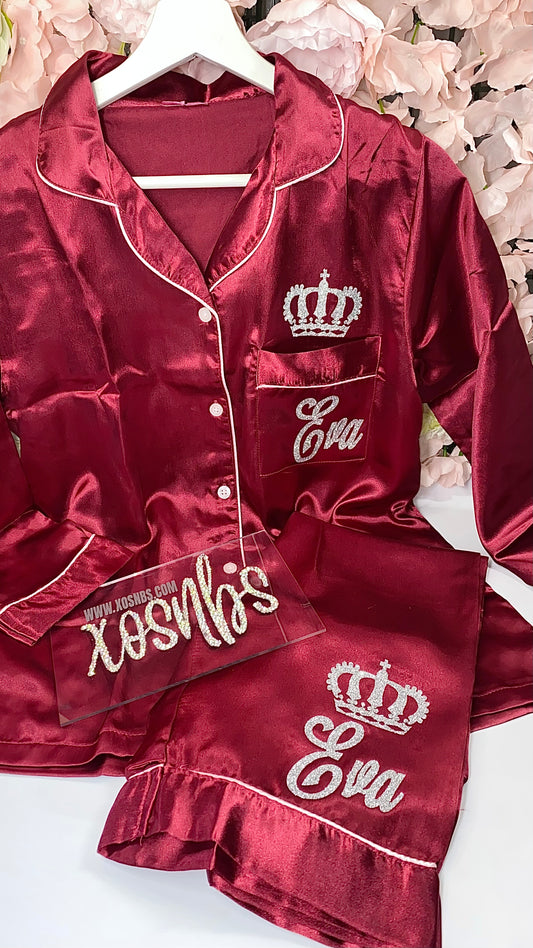 Personalised Full Length Satin Pyjamas | More Colours Available