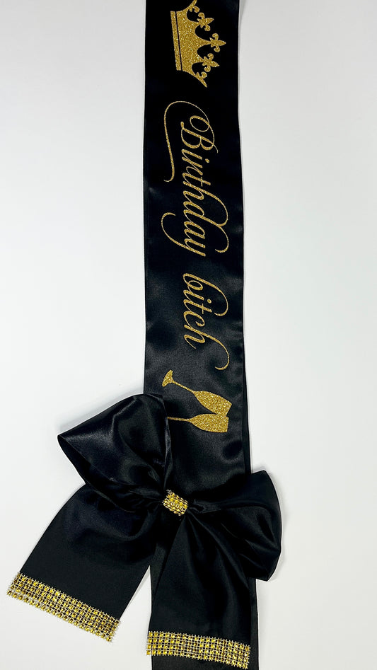 Personalised Satin Bow Sash | Black