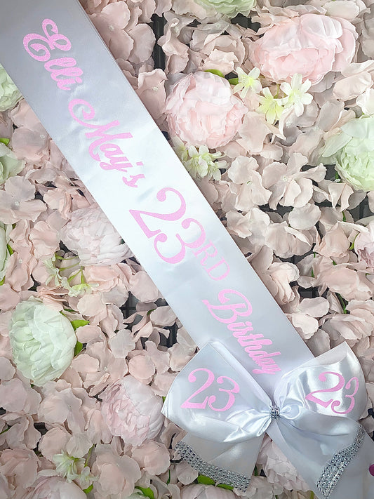 Personalised Satin Bow Sash | White
