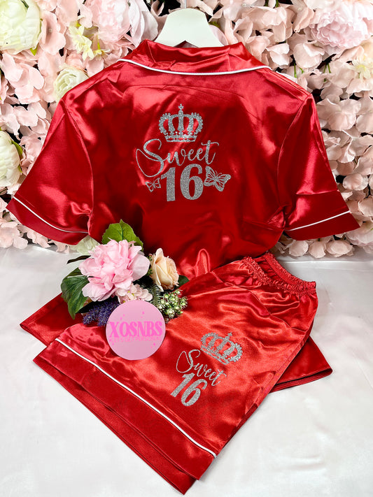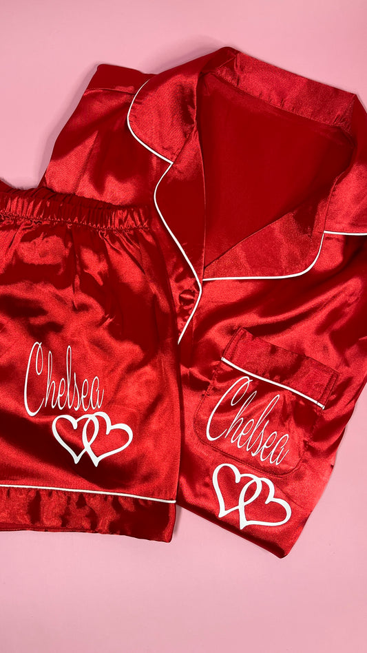 Satin Short Shirt Set | Red