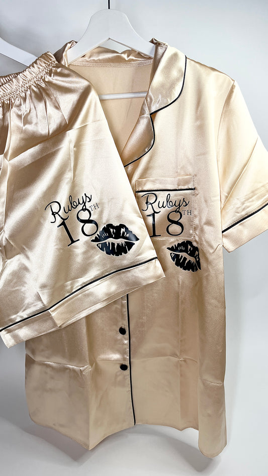 Satin Short Shirt Set | Champagne