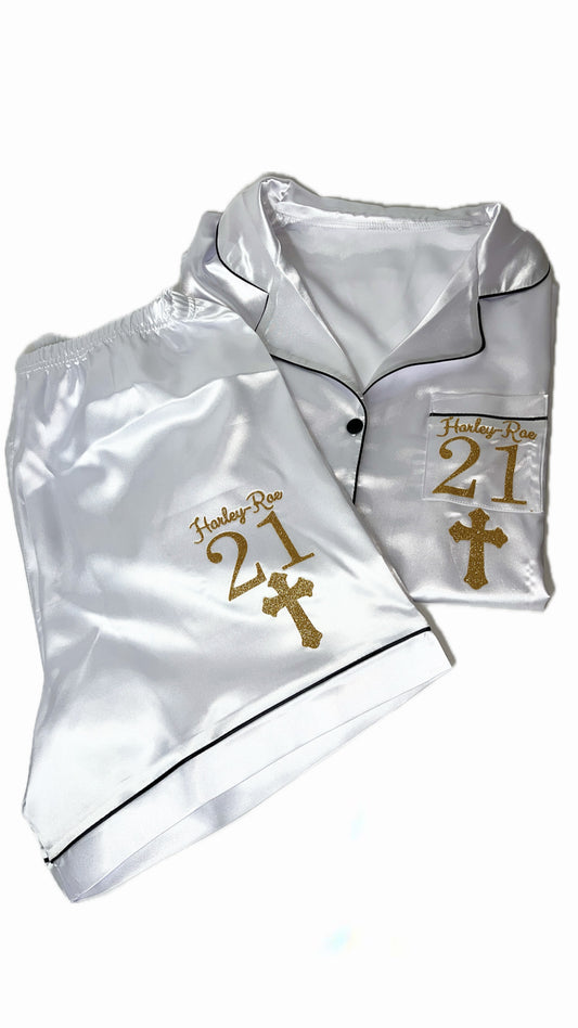 Satin Short Shirt Set | White