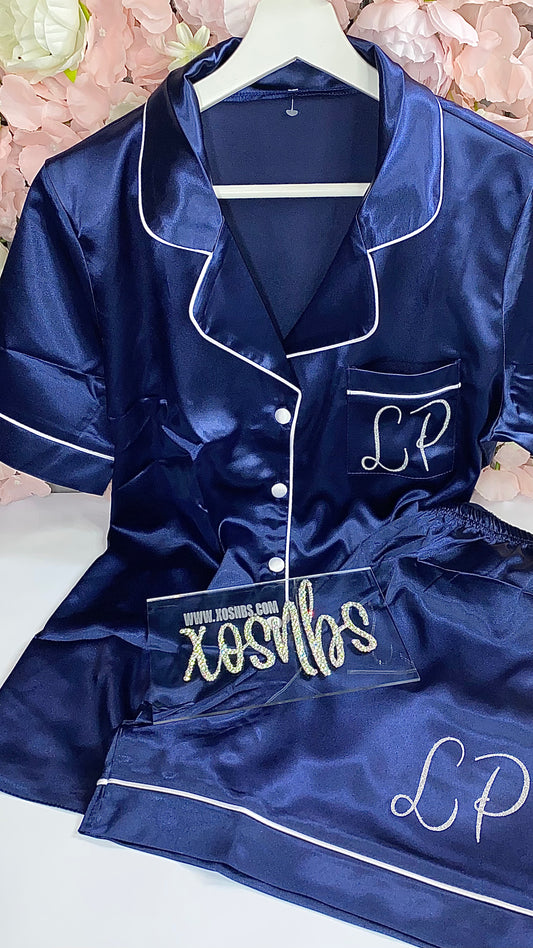 Satin Short Shirt Set | Navy