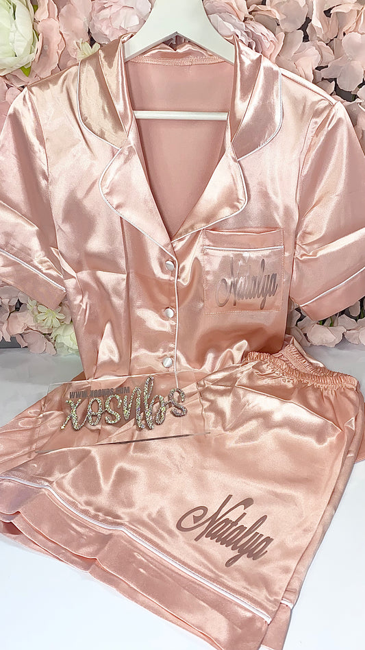 Satin Short Shirt Set | Pink