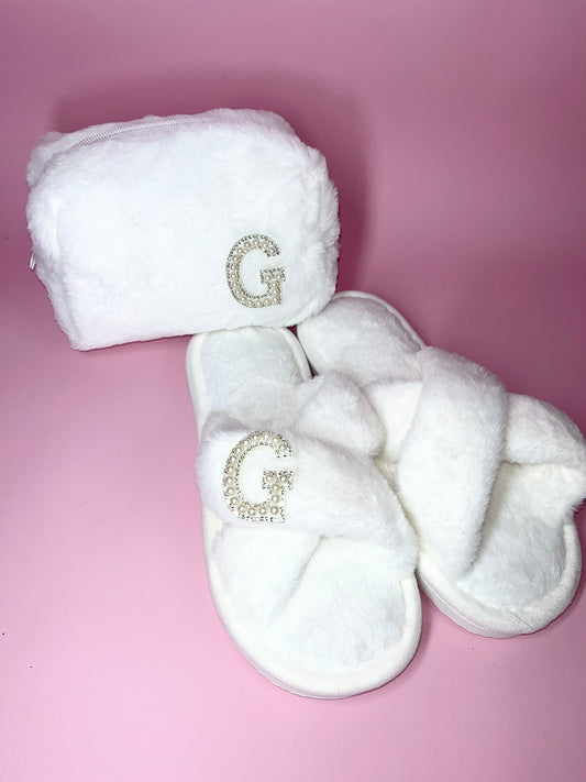 Initial Make Up Bag & Slippers Box Set