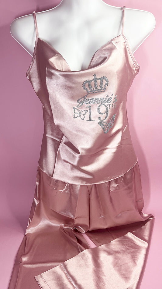 Satin Trouser Cami Set Pjs | 3 Colours Available