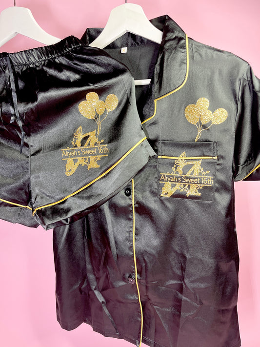 Satin Short Shirt Set | Black & Gold