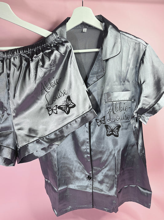 Satin Short Shirt Set | Grey